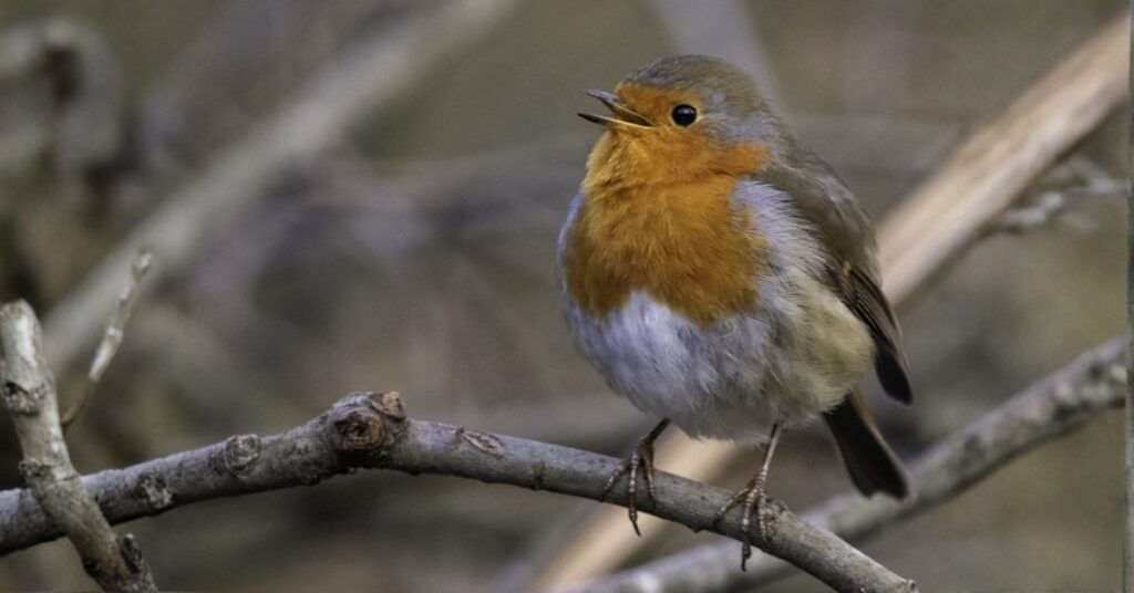 The European Robin, known for its reddish chest, still manages to hide quite well. Found in thick gardens and woods, it uses its small size and muted back feathers to vanish into underbrush.
